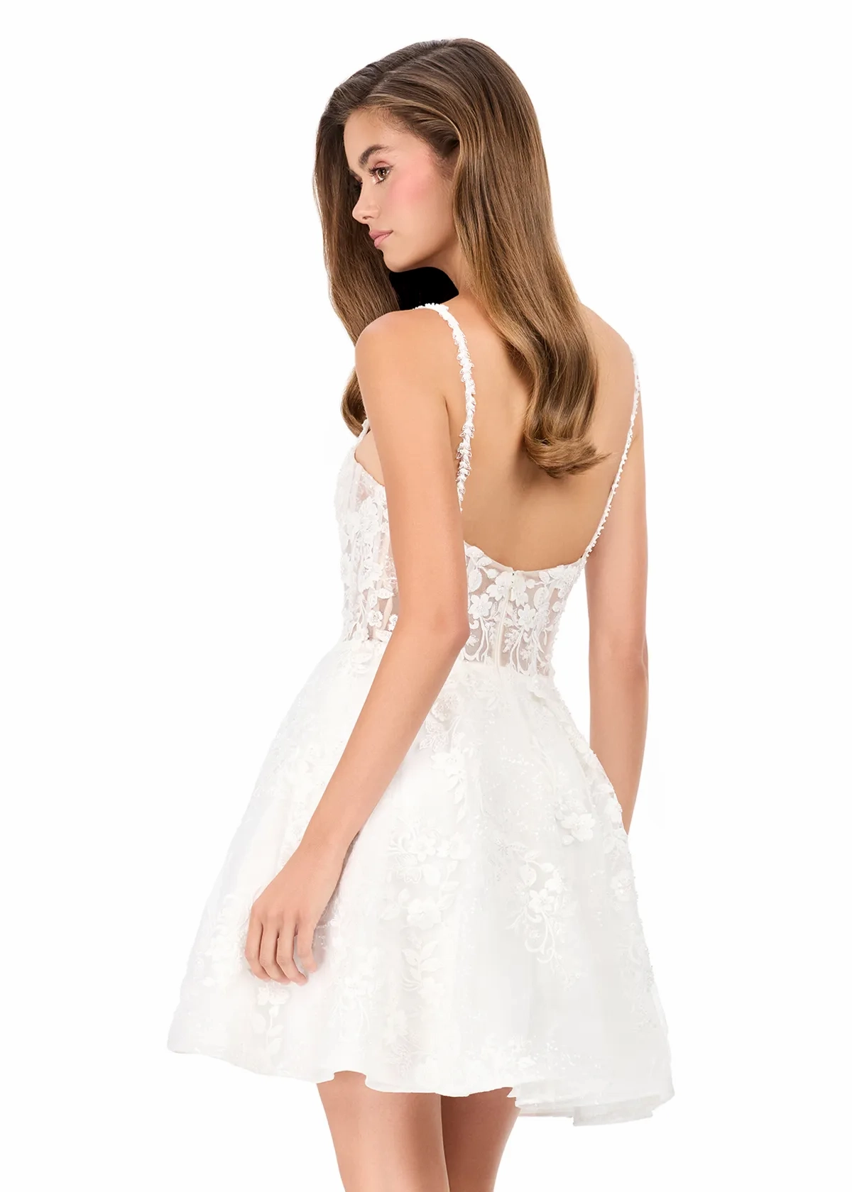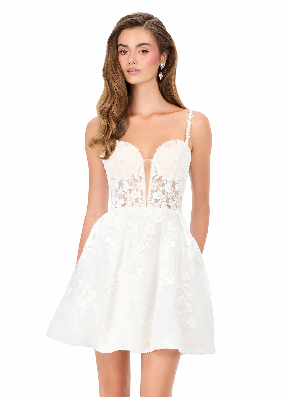 Elevate your special occasion look with ASHLEYlauren Style E4936, a breathtaking short ivory dress designed to blend timeless romance and modern glamour. With its luxe embroidered appliqué details and flattering A-line silhouette, this dress is perfect for making an unforgettable entrance at your next celebration.