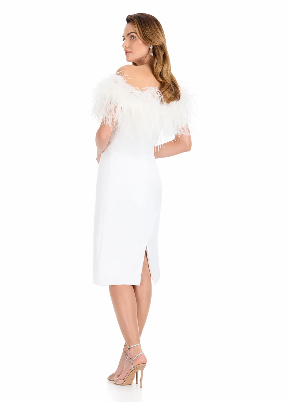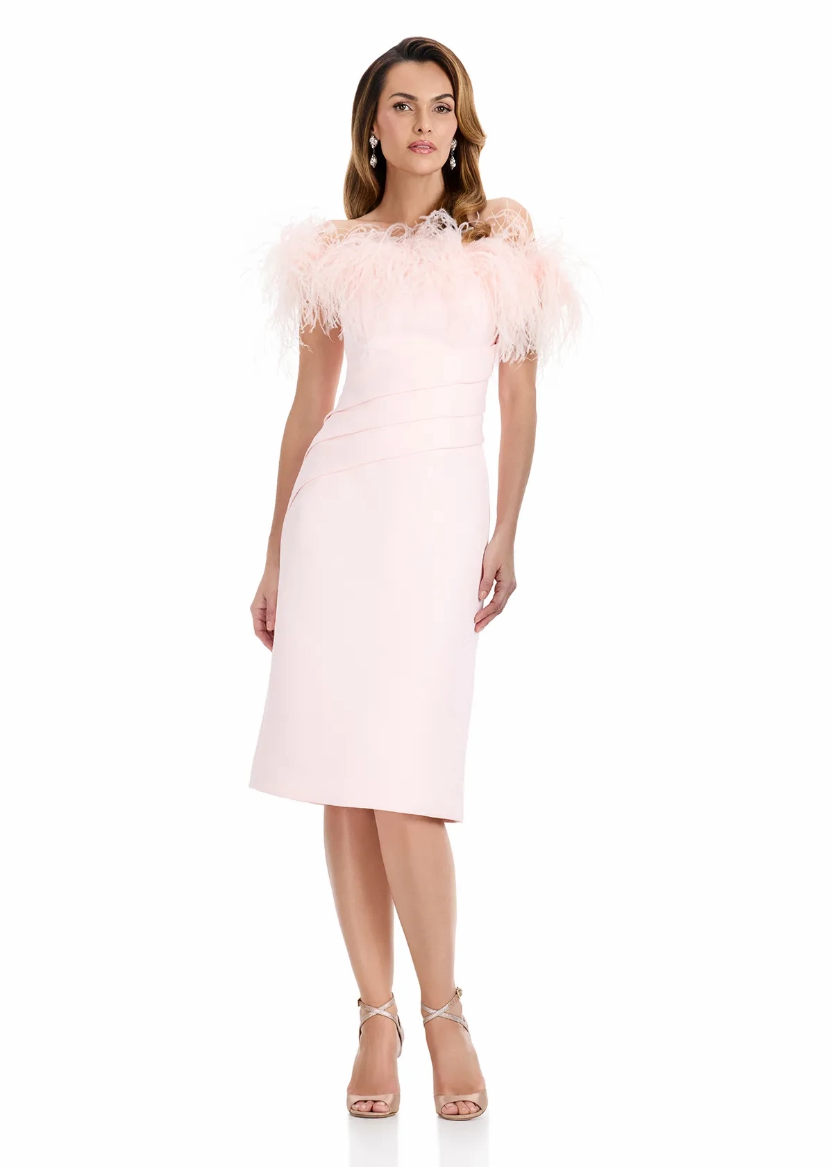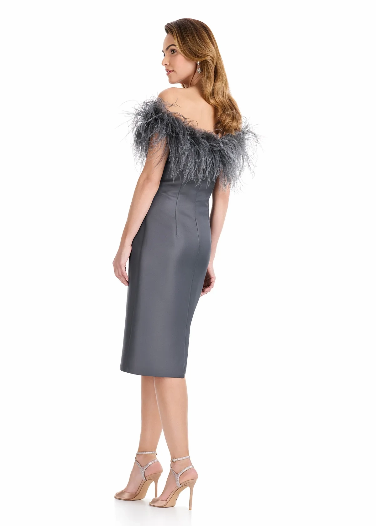 Elevate your cocktail and evening wardrobe with ASHLEYlauren Style E4960, a glamorous off-the-shoulder feather cocktail dress designed to deliver sophistication, drama, and show-stopping elegance. Crafted in luxurious satin and trimmed with decadent feathers, this statement dress is a must-have for fashion-forward moments.