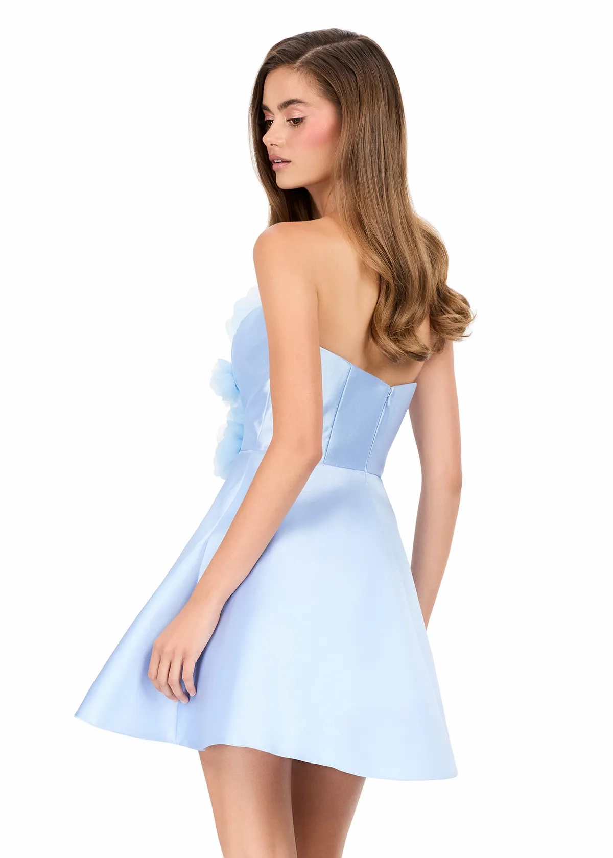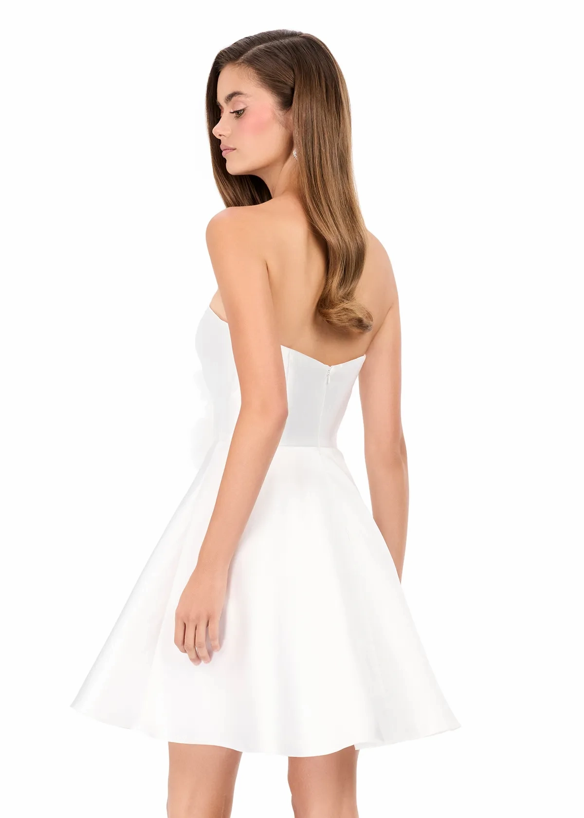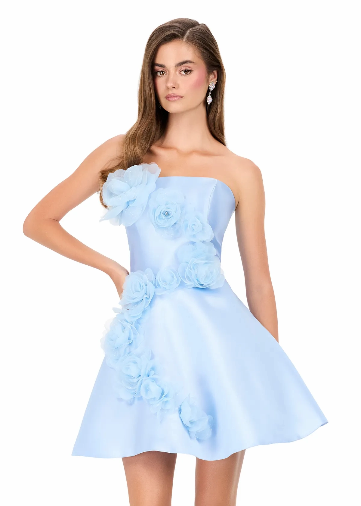 Make a fairytale entrance in ASHLEYlauren Style E4962, a dreamy strapless cocktail dress designed to bring soft romance and modern glamour to every special moment. Crafted from luxe mikado, this A-line silhouette features cascading 3D floral appliqués that trail across the bodice and skirt for a couture-inspired finish that feels fresh, feminine, and unforgettable.